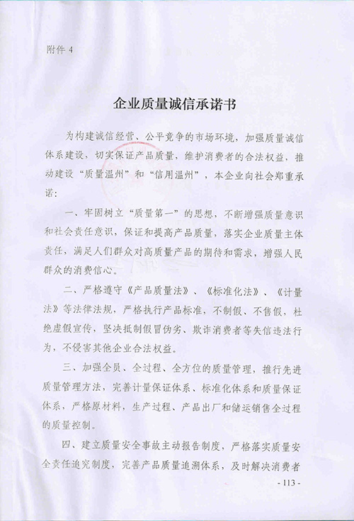 企业质量诚信承诺书